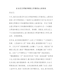 在XX区文明城市建设工作推进会上的讲话