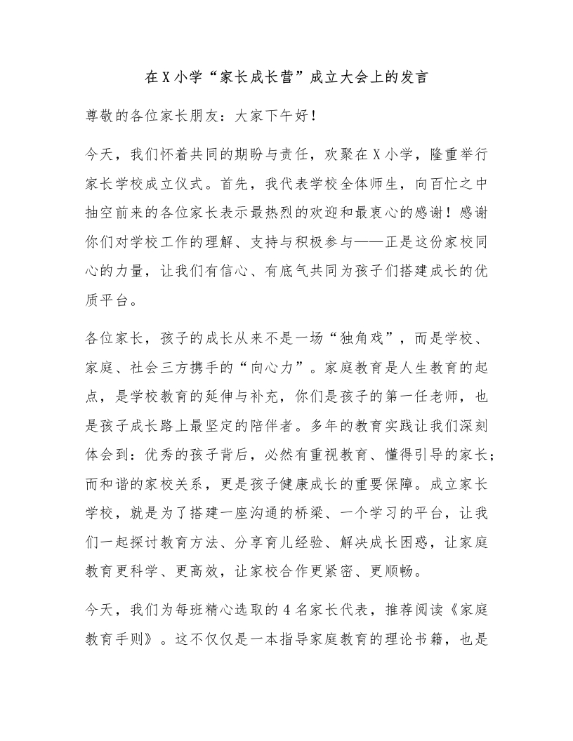 首页材料汇编综合材料在X小学“家长成长营”成立大会上的发言