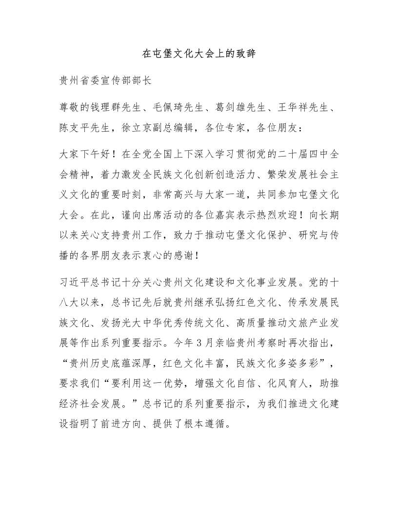 首页材料汇编综合材料在屯堡文化大会上的致辞