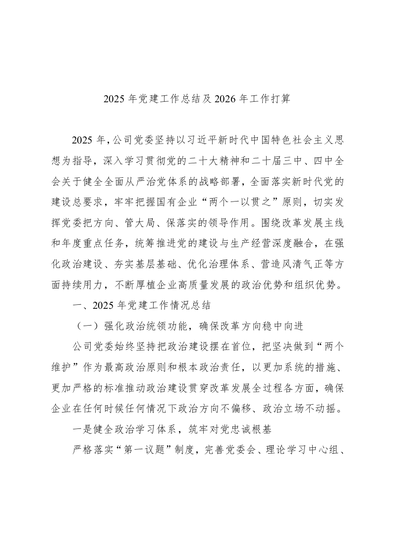 首页热门分类工作总结国企公司2025年党建工作总结7800字