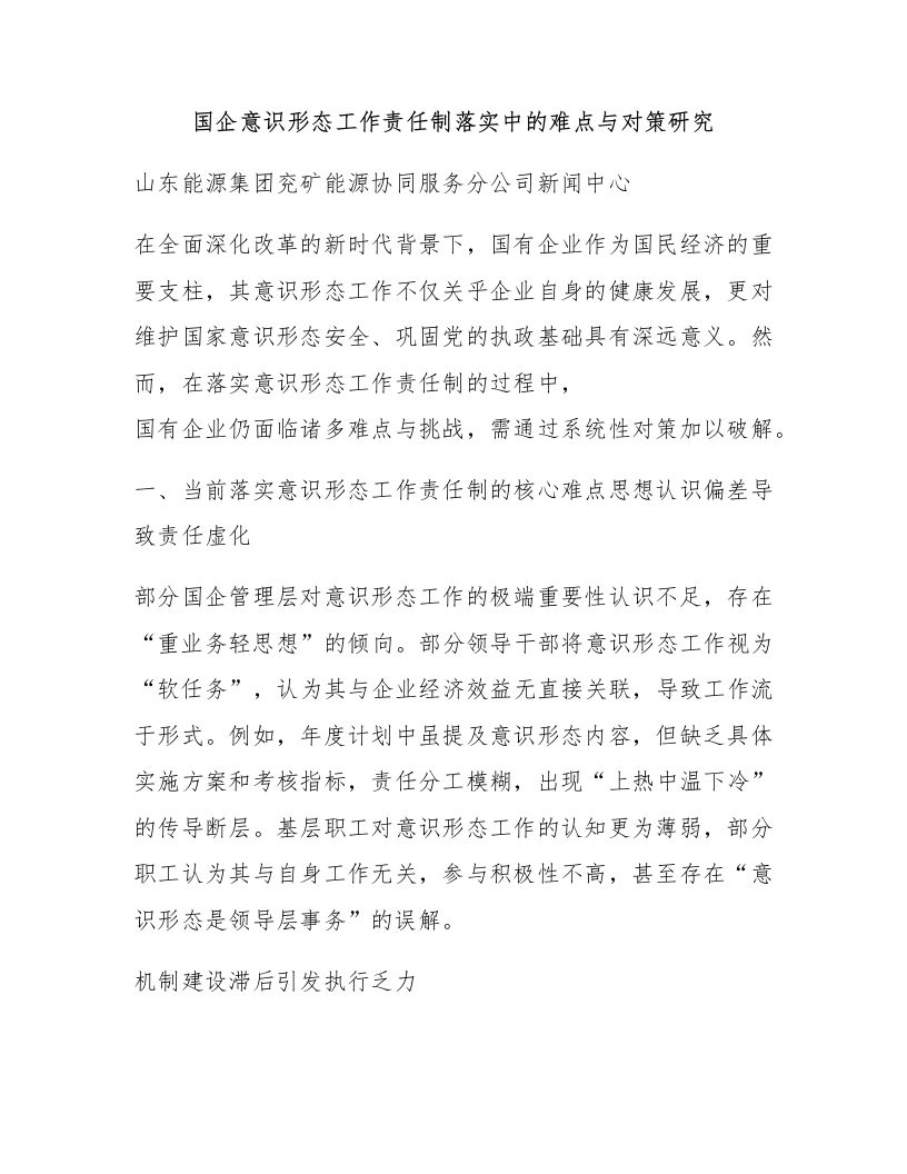 首页热门分类工作总结国企意识形态工作责任制落实中的难点与对策研究
