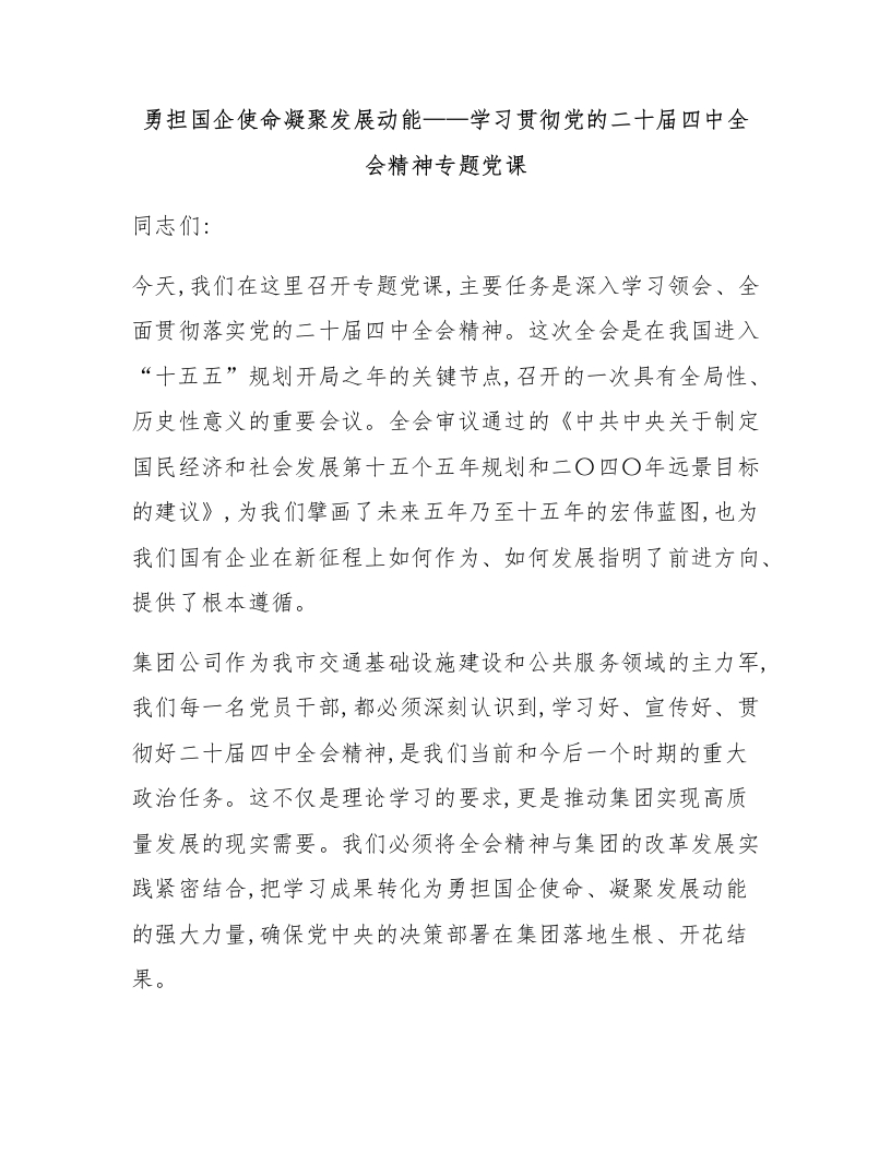 勇担国企使命凝聚发展动能——学习贯彻党的二十届四中全会精神专题党课
