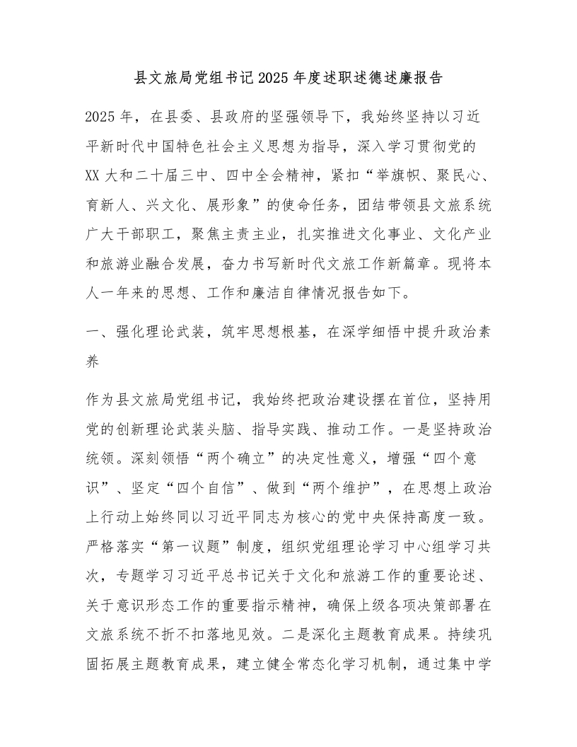 首页报告总结述职述廉县文旅局党组书记2025年度述职述德述廉报告