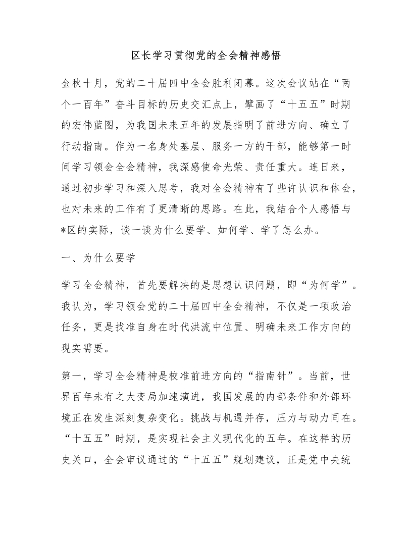 区长学习贯彻党的全会精神感悟