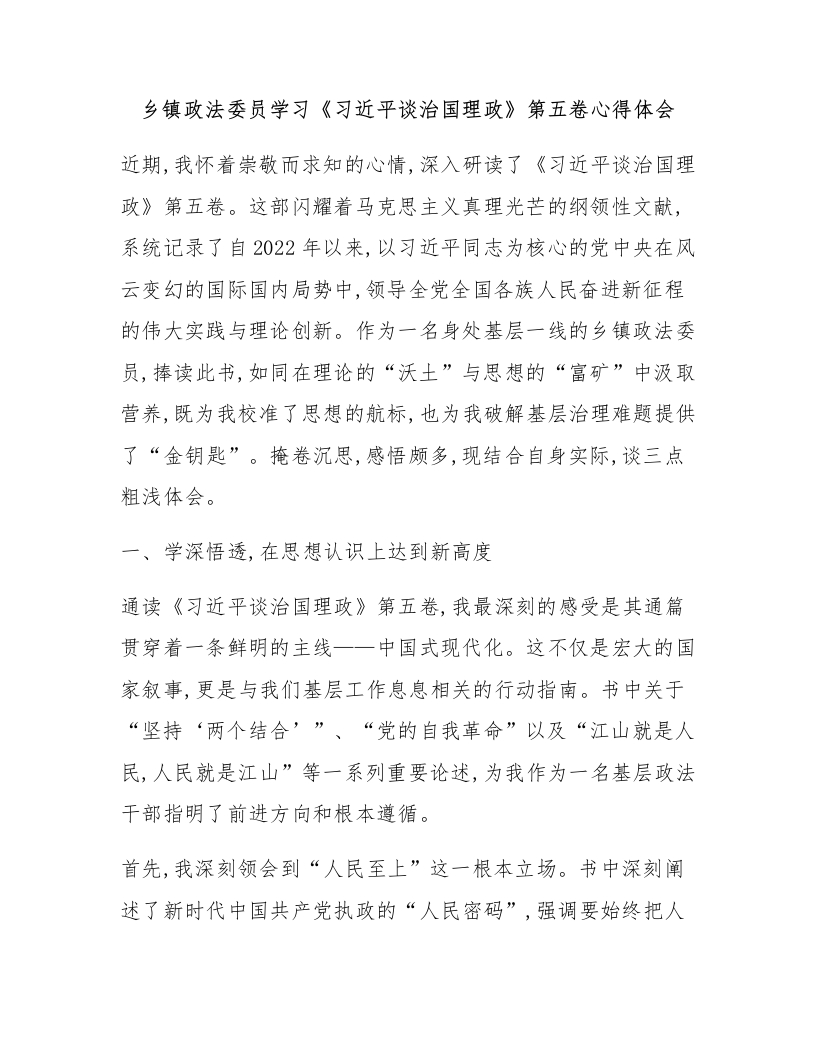乡镇政法委员学习《习近平谈治国理政》第五卷心得体会