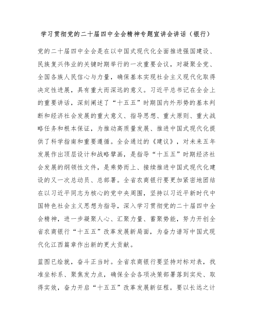 学习贯彻党的二十届四中全会精神专题宣讲会讲话(银行)