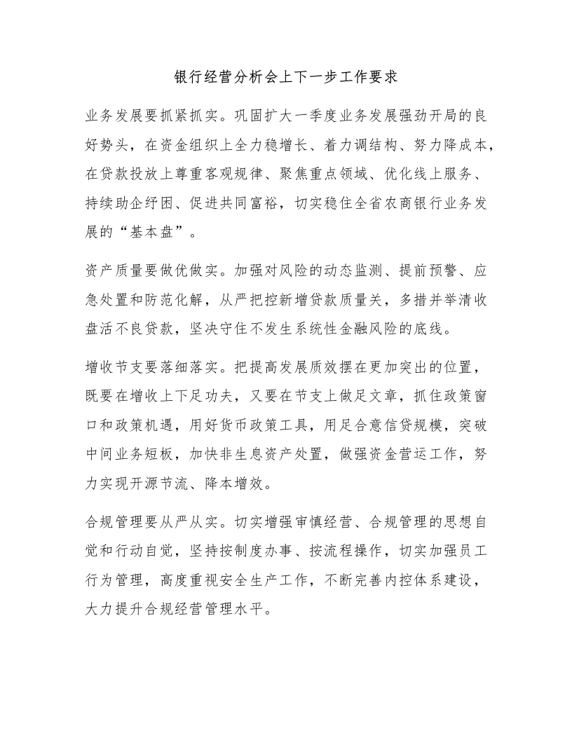 银行经营分析会上下一步工作要求