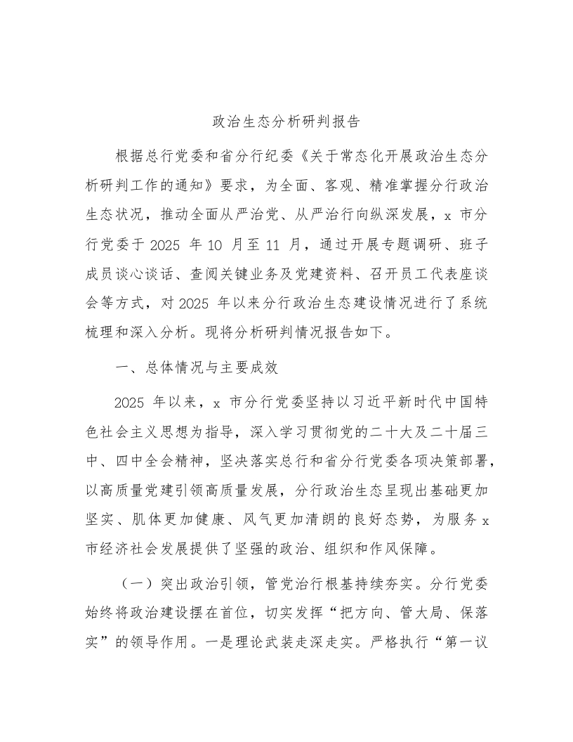 银行政治生态分析研判报告